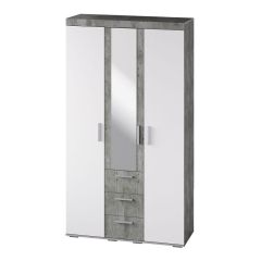 Простой и вместительный четырехстворчатый шкаф оснащен двумя вместительными выдвижными ящиками, в которых удобно хранить обувь и постельное белье.